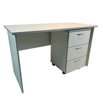 - стол укомплектован подкатной тумбой на колесиках с тремя выдвижными ящиками